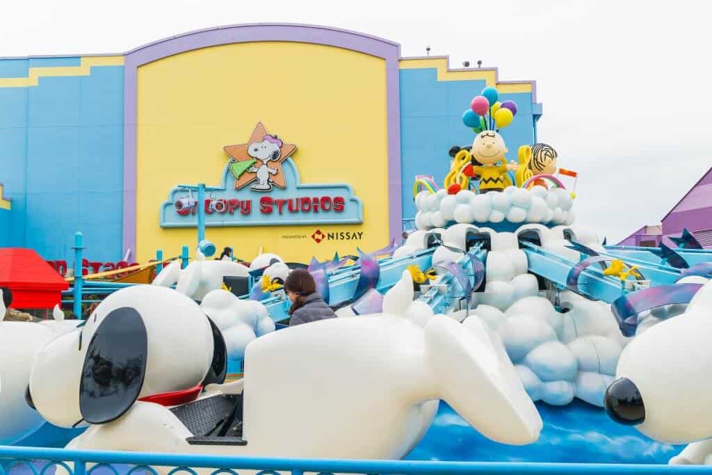 This part of the park is aimed at families, with kid-friendly rides like the Snoopy’s Great Race Coaster, the Flying Snoopy Carousel, and Hello Kitty’s Cupcake Dream, a spinning teacup ride.
